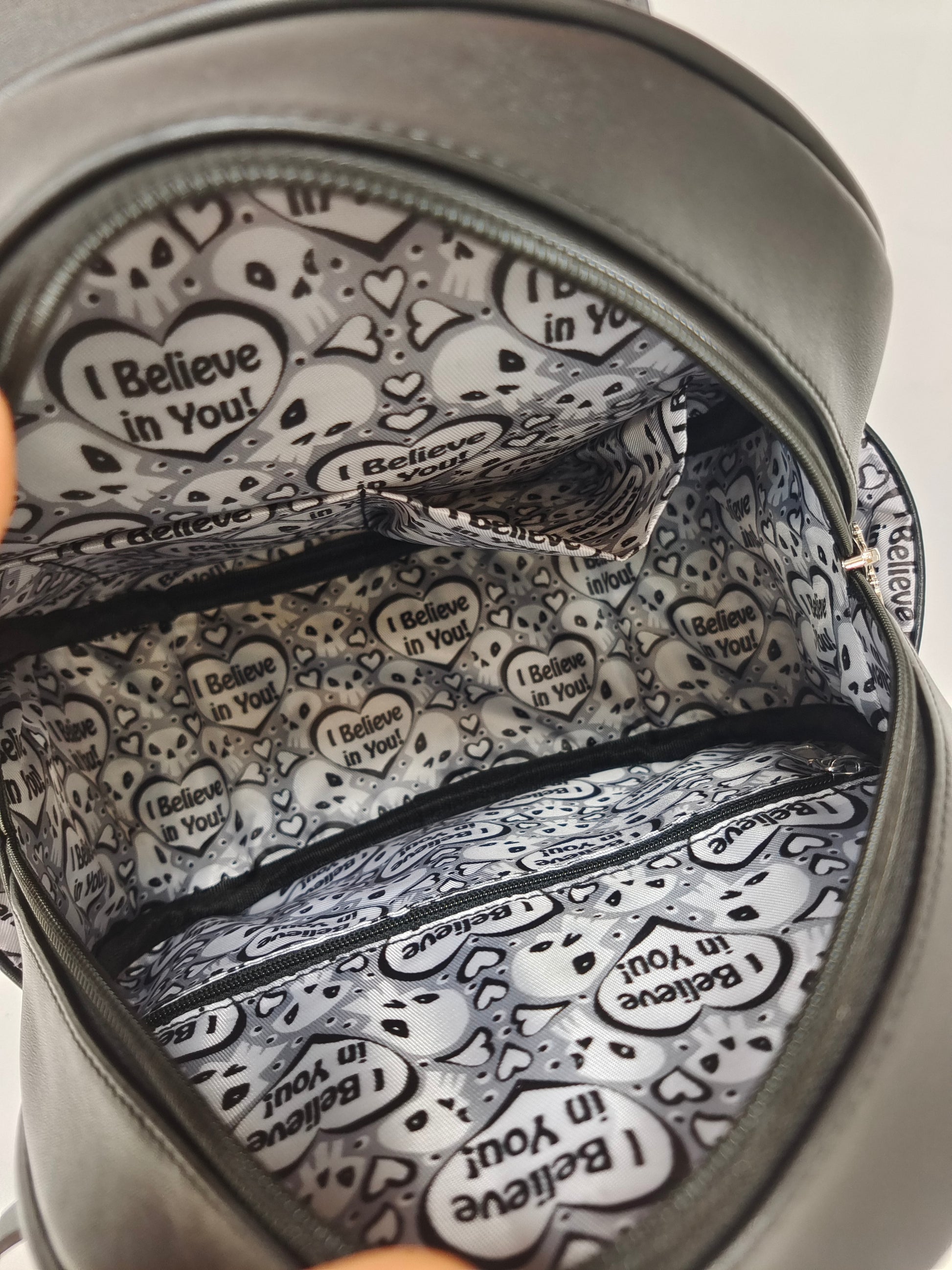 Beanz features a separate "face pocket" to store all of your little treasures in. The main compartment features a removable ITA board, custom print "I Believe in You" fabric, two internal pockets, and two side pockets. He has two straps and is meant to be worn as a backpack! PLUS--his wings are removable! (Can you say custom wings, y'all?)Ā