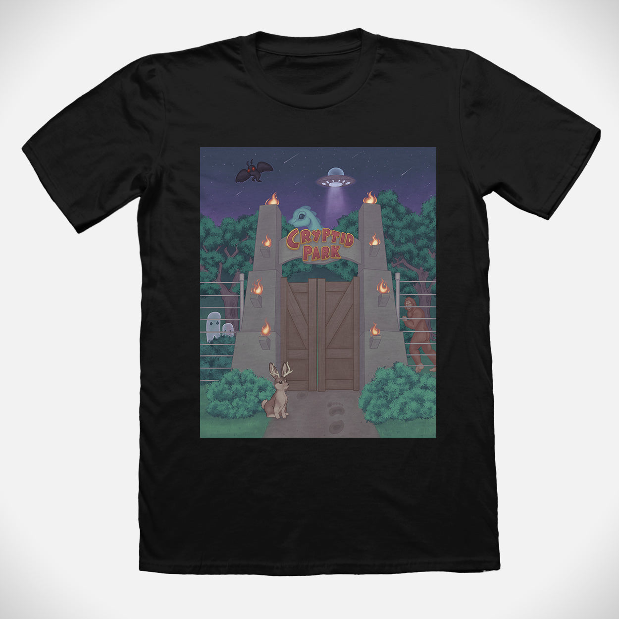Step into the wild side with our Cryptid Park Tee – a playful mashup of cryptids, UFOs, and mysterious legends.